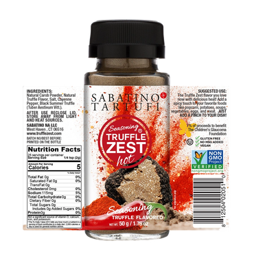 Ingredients: Chili Blend (Water, Chili Peppers, Olive Oil), Organic Sugar, Spices, Organic Apple Cider Vinegar, Black Truffle, Citric Acid, Natural White Truffle Flavour, Salt, Garlic, Xantham Gum.